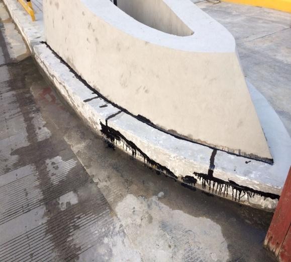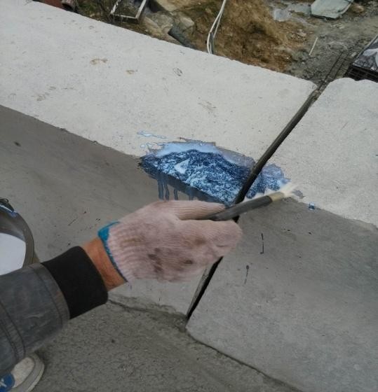 第二道工序:將局部破損較嚴(yán)重區(qū)域采用聚合物砂漿修補平整。先在大的缺陷、裂縫處涂上均勻、足夠的底涂,等其干燥之后用聚合物砂漿將其修補完整。